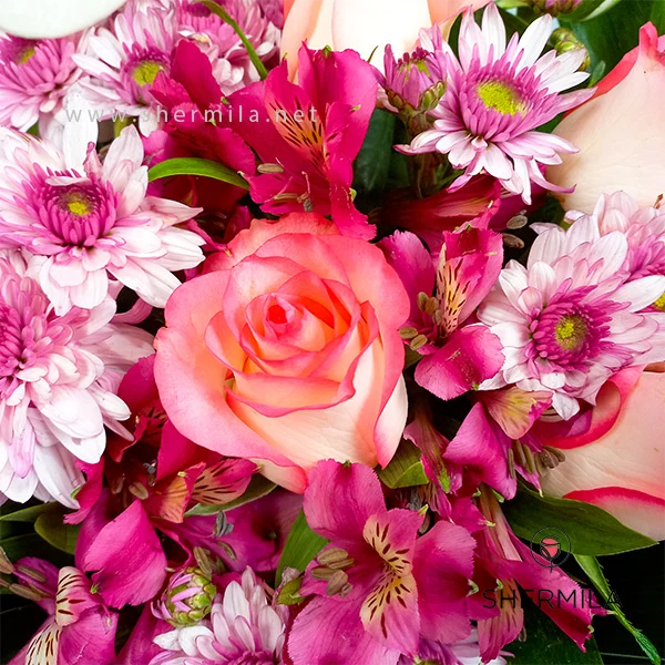 مشخصات باکس گل زیبای مارال :در این باکس زیبا از هفت عدد رز لب ماتیکی ،4 عدد آنتوریوم سفید، 1 دسته داوودی بنفش ،1 دسته آلسترومریا بنفش به همراه برگ و تزئینات خاص شرمیلا استفاده شده است. این باکس گل زیبا را می توانید از طریق سایت سفارش دهید.