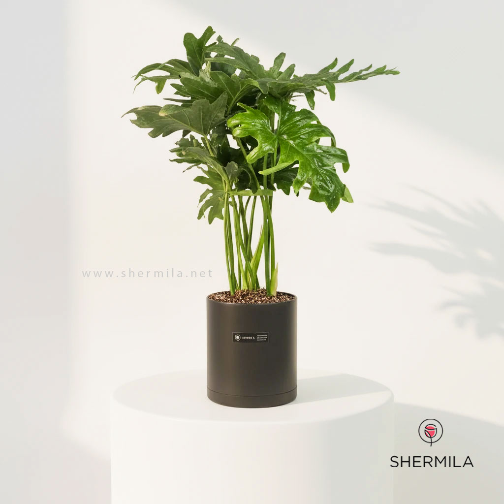 این گیاه با داشتن برگ های درشت و سبز می تواند رنگ و بویی تازه به منزل شما ببخشد و شادابی را به محیط کار و زندگی شما برگرداند. این گلدان برگ های زیادی برخوردار است که نمیتوان مانع رشد آن شد. این گیاه رشد طولی زیادی ندارد ودر عوض در شرایط مناسب تعداد برگ های آن زیاد می شود و گلدان شما انبوه از برگ های سبز می شود