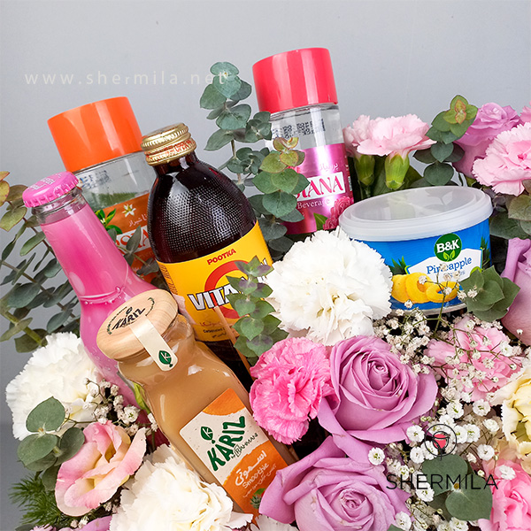 - توجه : به همراه : 1 عدد نوشیدنی ویتامین c ، کمپوت آناناس 1 عدد، اسموتی سیب و موز 1 عدد ، نوشیدنی آلوئه ورا شیشه ای 1 عدد، آب معدنی درجه یک 2 عدد.