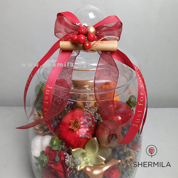 - باکس گل شیشه ای یلدایی چیلانه شامل