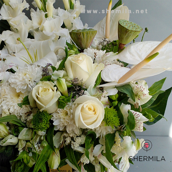 - 1 دسته گل آلسترومریا سفید