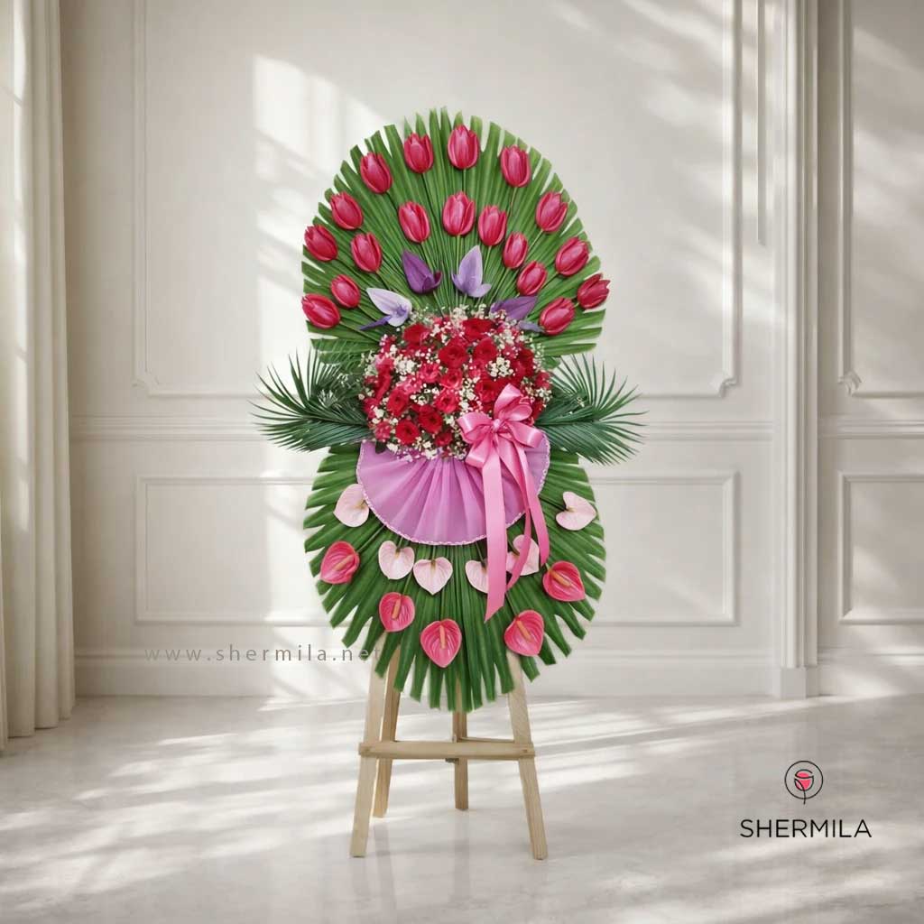 تاج گل افشین یکی از محصولات گلآرایی زیبا و خاص است که معمولاً برای مراسمهای مختلف مانند عروسی، تولد، مراسمهای مذهبی و دیگر مناسبتها استفاده میشود. این نوع تاج گل به دلیل طراحی خاص و جذابیت ظاهری، محبوبیت زیادی دارد. تاج گل افشید معمولاً شامل ترکیبی از گلهای تازه و متنوع است. این گلها ممکن است شامل گلهای زیبایی مانند گل رز، میخک، لیلیوم، داوودی و دیگر گلهای زینتی باشند. علاوه بر گلها، معمولاً از برگها و گیاهان سبز نیز برای تزئین و افزایش زیبایی تاج استفاده میشود. تاج گل افشید معمولاً دارای طراحی خاص و متناسب با نوع مراسم است. این طراحی میتواند به صورت گرد، بیضی یا حتی به صورت نیمدایره باشد. این تاج گل در رنگهای متنوعی طراحی میشود که به تناسب سلیقه و تم مراسم انتخاب میگردد.