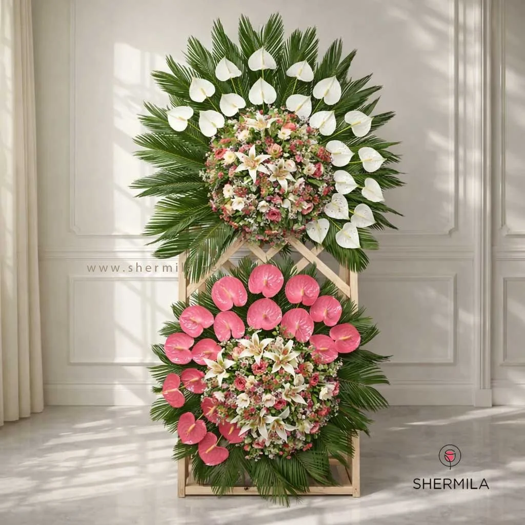 تاج گل تبریک لنا معمولاً به عنوان یک هدیه زیبا و شیک برای تبریک به مناسبتهای مختلف مانند تولد، سالگرد، افتتاحیهها و مراسمهای ویژه استفاده میشود. معمولاً شامل گلهای طبیعی و تازه مانند گلهای رز، لیلیوم، میخک و دیگر گلهای زینتی است. در برخی موارد از گلهای مصنوعی نیز استفاده میشود. از برگهای سبز و طبیعی یا مصنوعی برای تزئین و زیبایی بیشتر استفاده میشود. این تاج گلها معمولاً در ترکیبهای رنگی متنوعی طراحی میشوند. از رنگهای ملایم و آرامشبخش گرفته تا رنگهای زنده و شاداب که به سلیقه مشتری بستگی دارد. طراحی تاج گل لنا معمولاً به شکلی زیبا و هنرمندانه انجام میشود، به طوری که گلها به صورت متوازن و جذاب کنار هم قرار گیرند. تاج گلها ممکن است با یک پایه یا نگهدارنده مناسب عرضه شوند تا در مکانهای مختلف به راحتی قرار گیرند و از سقوط آنها جلوگیری شود.