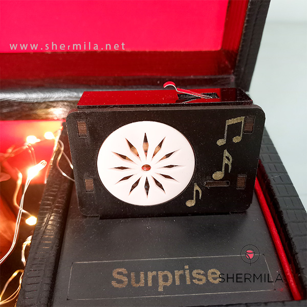 - توجه : این محصول زیبا با باز شدن درب آن به صورت خودکار شروع به پخش موزیک و رقص نور میکند.
