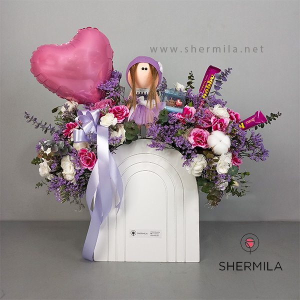 - توجه : به همراه دو عدد شکلات، یک عروسی روسی با کیفیت، یک بادکنک قلبی و یک خرس شمعی کوچک