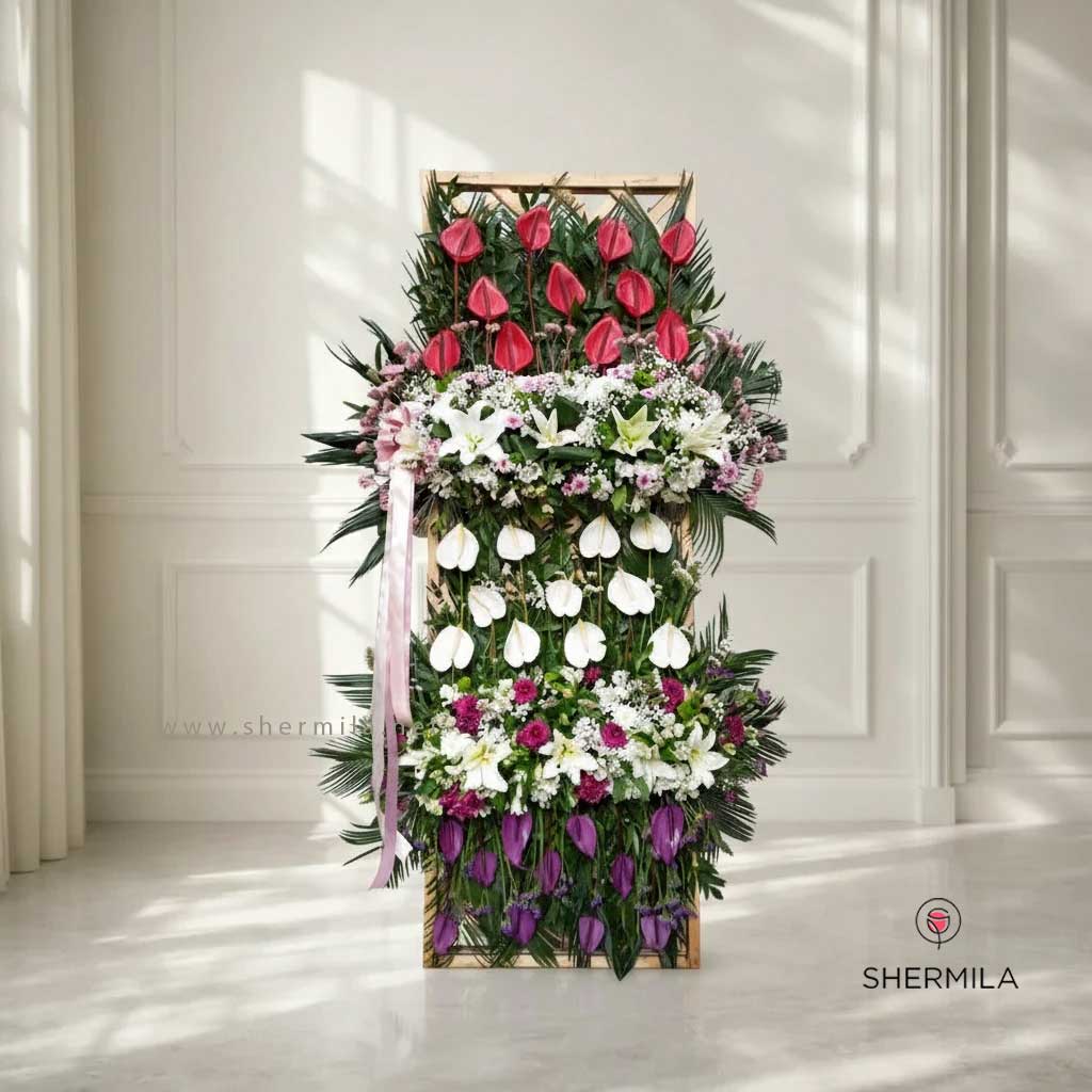 تاج گل تبریک آوین یکی از انواع گلآراییهای زیبایی است که معمولاً برای تبریک و جشنها استفاده میشود. این نوع تاج گل به دلیل طراحی خاص و زیبایی که دارد، میتواند به عنوان هدیهای شیک و زیبا برای مناسبتهای مختلف مورد استفاده قرار گیرد. تاج گل معمولاً از پایهای از چوب یا مواد دیگر ساخته میشود که به عنوان نگهدارنده گلها عمل میکند. این پایه میتواند به شکل دایره یا بیضی باشد. گلها میتوانند طبیعی یا مصنوعی باشند. در بسیاری از موارد، از گلهای طبیعی تازه برای زیبایی بیشتر استفاده میشود. تاج گل آوین معمولاً شامل ترکیبی از گلهای مختلف است. گلهایی مانند گل رز، میخک، لیلیوم، داوودی و دیگر گلهای فصلی ممکن است در این طراحی به کار رود. گلها معمولاً در رنگهای شاداب و متنوع انتخاب میشوند که جلوه زیبایی به تاج گل میبخشند. طراحی تاج گل آوین میتواند به صورت مدرن، کلاسیک یا رمانتیک باشد و به دقت و با توجه به جزئیات انجام میشود.