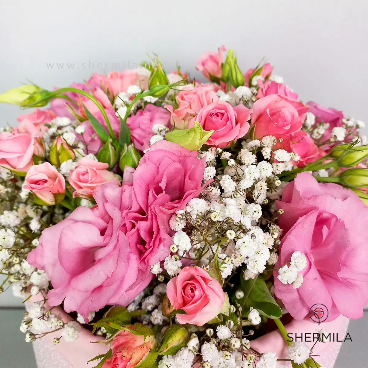 دسته گل یونا: این محصول جذاب حاوی گل های آلسترومریا، رز، میخک و ژیپسوفیلیا می باشد که توسط گل آرا های خوش ذوق مجموعه شرمیلا به بهترین نحو تزیین شده است.