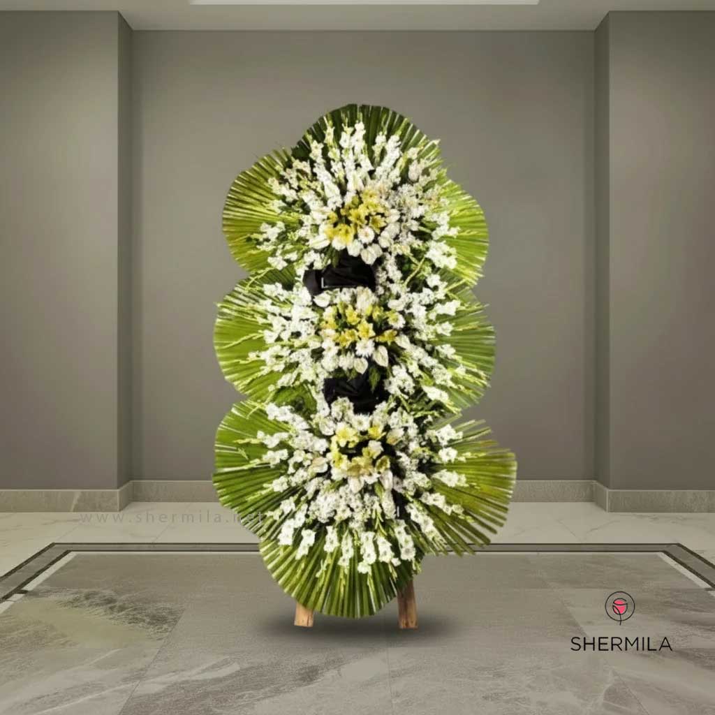 تاج گل زراندام برای چه مجالسی مناسب است؟ این تاج گل برای مراسم های ختم و تحریم مناسب است.