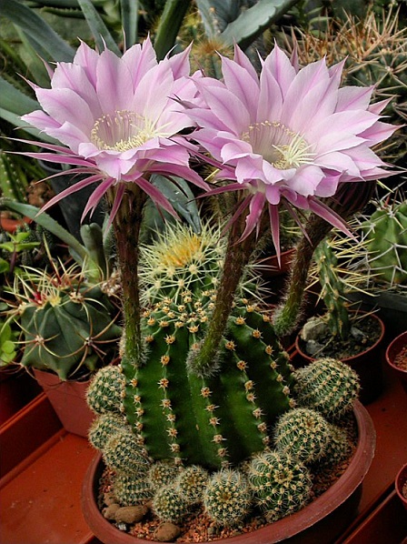 کاکتوسها، که با نام علمی Cactaceae شناخته میشوند، تیره ای از گیاهان گلدار هستند که عمدتاً در مناطق خشک و نیمهخشک قاره آمریکا یافت میشوند. این گیاهان به دلیل سازگاریهای منحصر به فرد خود با شرایط کمآبی، از جمله توانایی ذخیره آب در بافتهای خود، به عنوان گیاهان زینتی محبوب در سراسر جهان شناخته میشوند. کاکتوسها دارای مکانیسمهای فیزیولوژیکی ویژهای هستند که به آنها امکان میدهد آب را به طور موثر ذخیره کرده و از تبخیر آن جلوگیری کنند. بافتهای گوشتی و ساقههای ضخیم این گیاهان، مخازن آب طبیعی به شمار میروند. برگهای کاکتوسها به مرور زمان به خار تبدیل شدهاند. این خارها علاوه بر کاهش سطح تبخیر آب، نقش محافظتی در برابر حیوانات گیاهخوار ایفا میکنند.کاکتوسها از نظر اندازه، شکل و رنگ تنوع چشمگیری دارند. گونههای مختلف این گیاهان میتوانند به صورت کروی، استوانهای، ستونی یا حتی آویزی رشد کنند.